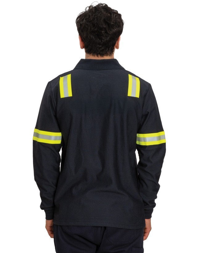 Özellikler: Düz (flat) dikiş, rib manşet/yaka, gizli/kapaklı ön yüz, FR cırt/kapamalar; metal aksamlar ısı/alev ile teması minimize edecek şekilde gizlenmiştir.