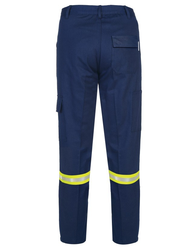 Özellikler: Üç dikişli kritik hatlar, diz takviyesi, dizlik cebi, kapaklı cepler, gizli fermuar/snaps, FR cırt, ayarlanabilir bel; metal aksamlar ısı/alev temasını minimize edecek biçimde gizlidir.